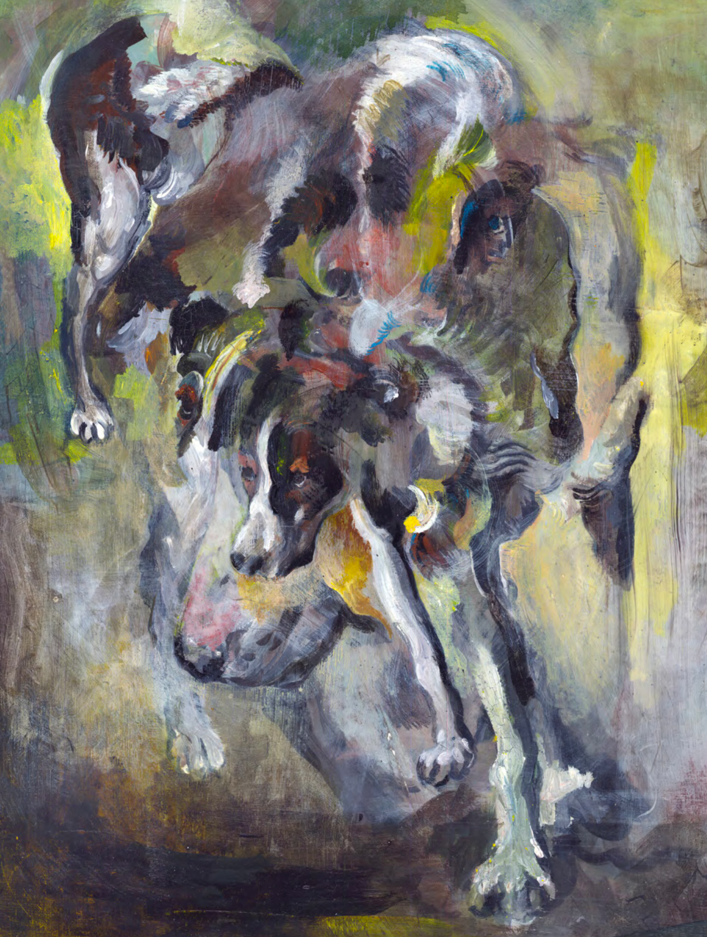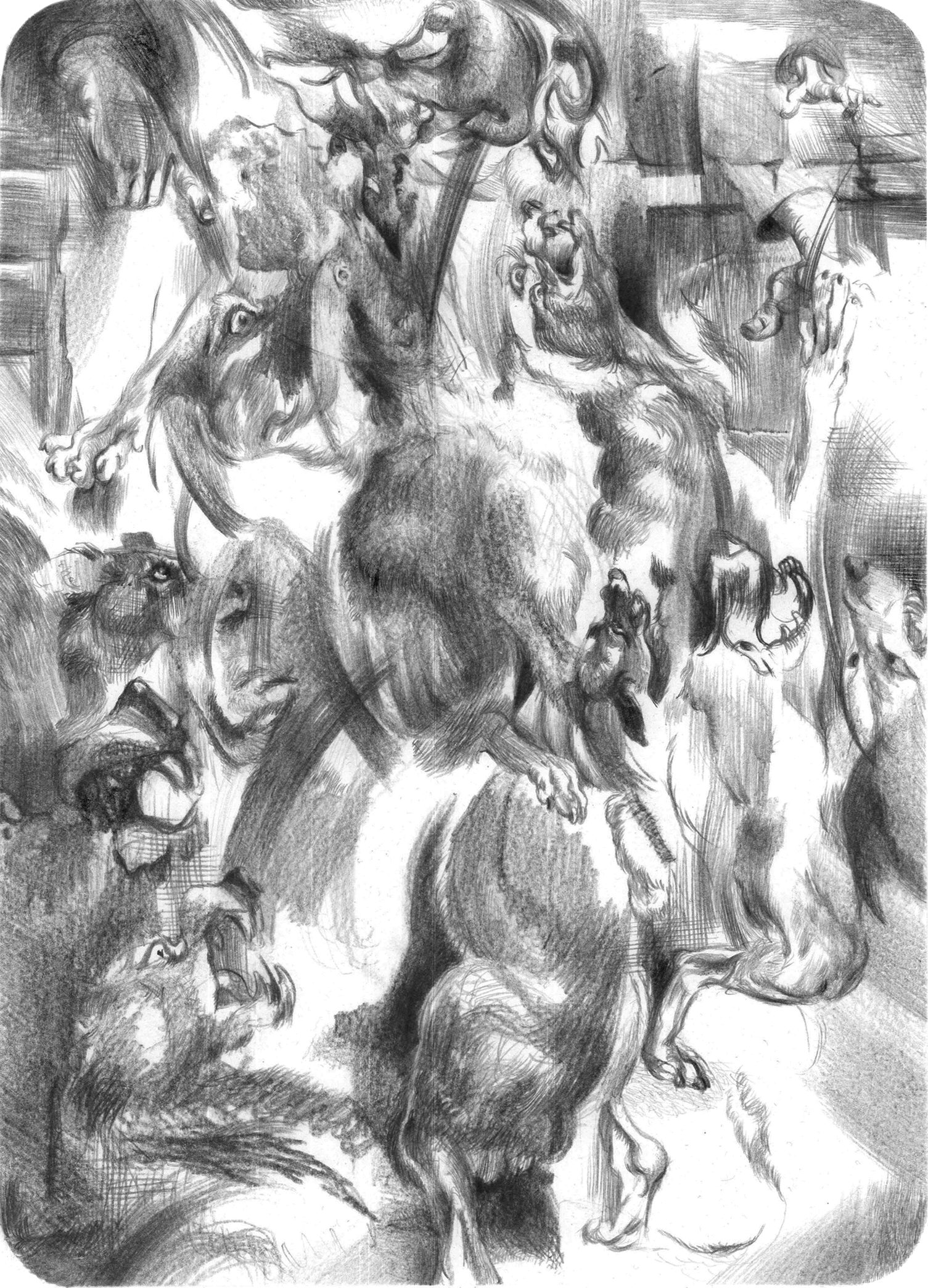 Chiens chassant,, d’après Huet, 2021, graphite sur papier, 35 x 27 cm